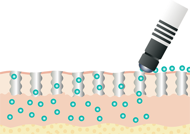 電気反発力で有効成分をさらに効率的に皮膚に注入していきます。(メソポレーション法)